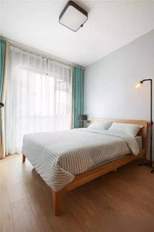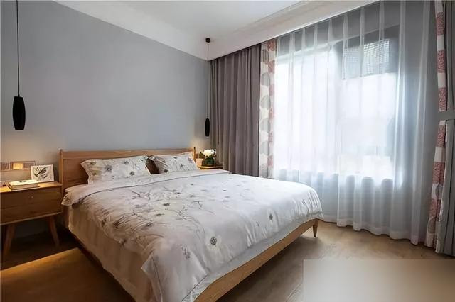 主次卧用同色墙漆省下预算,靠窗帘灯具点睛是聪明做法。